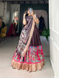 Embrace timeless elegance with this captivating Kalamkari print lehenga choli set. Crafted from luxurious Dola Silk, this ensemble is a fusion of rich tradition and modern style, perfect for making a lasting impression at any festive occasion or wedding ceremony.