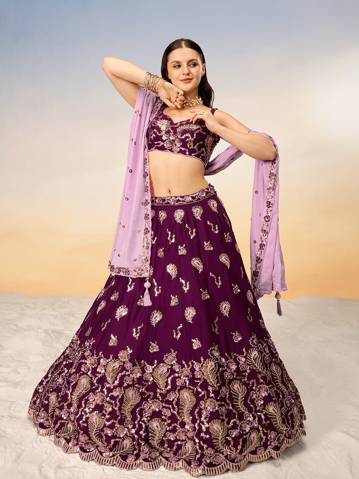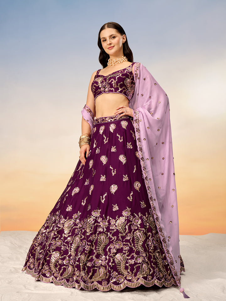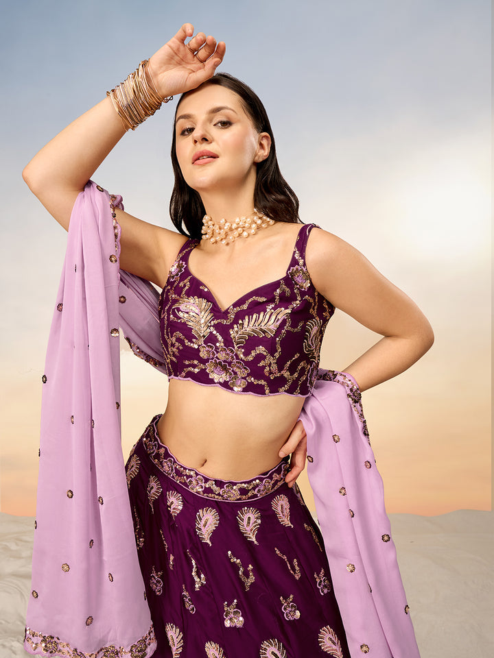 Burgundy Pure Georgette with heavy Sequins embroidery Semi-Stitched Lehenga choli & Dupatta