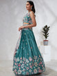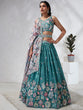 Immerse yourself in grandeur with this captivating turquoise blue lehenga choli set, a mesmerizing symphony of sequins and thread embroidery.