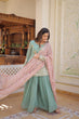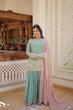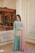 Cascade Green Stunning Faux Georgette Kurti-Palazzo-Dupatta Set with Sequin & Thread Embroidery