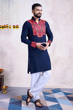 Navy Blue Color Rayon Fabric Embroided Kurta.