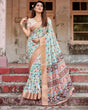 Design: Showcases vibrant digital prints combined with traditional Tussar motifs, creating a unique and captivating aesthetic.