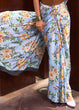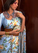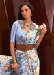 Cornflower Blue Floral Printed Satin Crepe Saree
