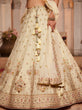 Crafted from premium cream-colored tissue fabric, this full-flair lehenga is richly adorned with moti, sequins, and intricate coding embroidery, finished with a beautiful thread work border on the hemline.