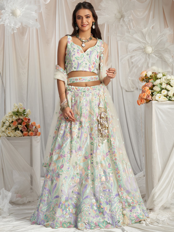 Cream Net Sequins embroidery Semi-Stitched Lehenga choli & Dupatta