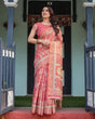 The pallu is a masterpiece, featuring circular mythological motifs interspersed with delicate floral patterns, creating a timelessly elegant look. Handcrafted tassels complete the design, making this saree ideal for weddings, festive celebrations, and special occasions.