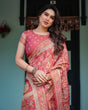 The cotton-linen blend provides the perfect combination of softness, durability, and breathability. Its vibrant crimson hue, paired with mythological artistry, makes this saree a timeless addition to your ethnic wardrobe.