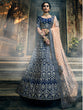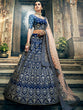Dark Blue Art Silk Semi Stitched Lehenga With Unstitched Blouse