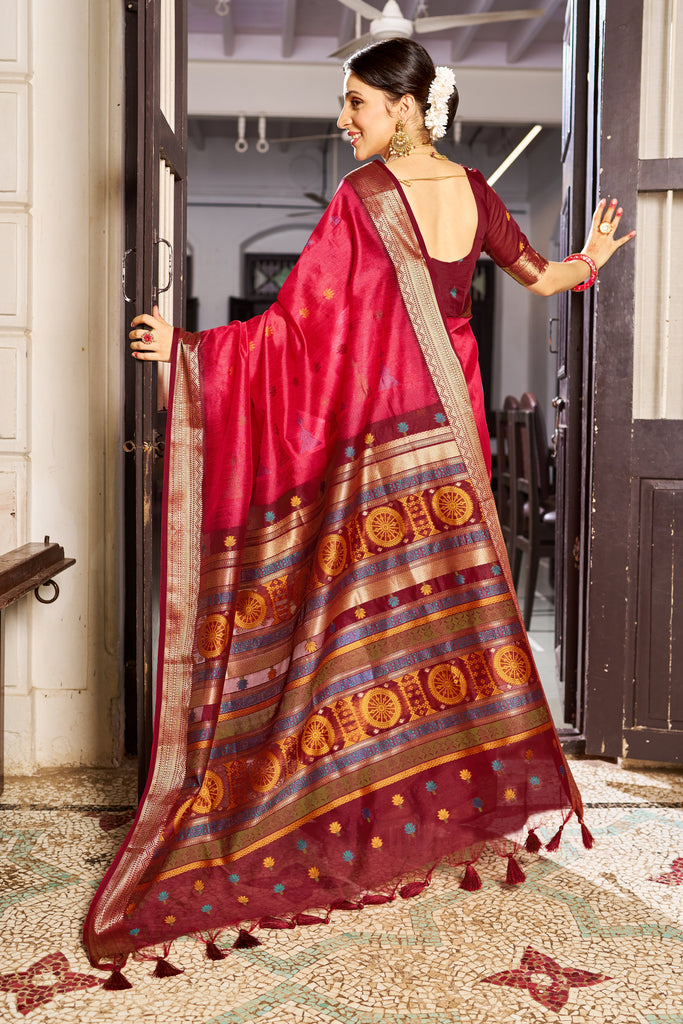 Dark Pink Elegant Slub Lilan Saree – Luxurious Semi Tussar Silk