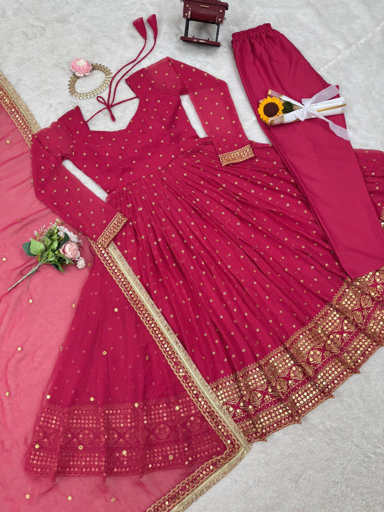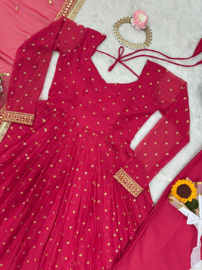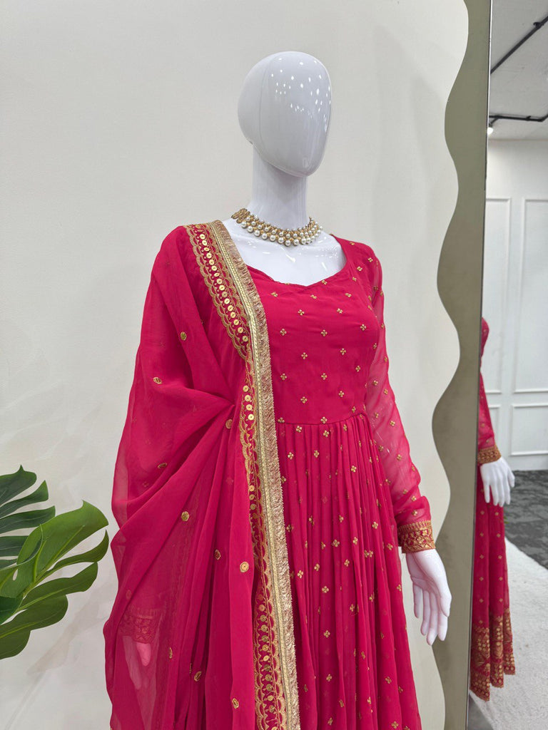 Dark Pink Elegant Thread & Sequin Work Georgette Suit Set