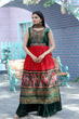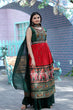 Designer Hand Mirror Work Green With Red Sharara Suit