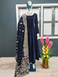 Designer Teal Blue Color Velvet Gown with Embroidery Work Dupatta
