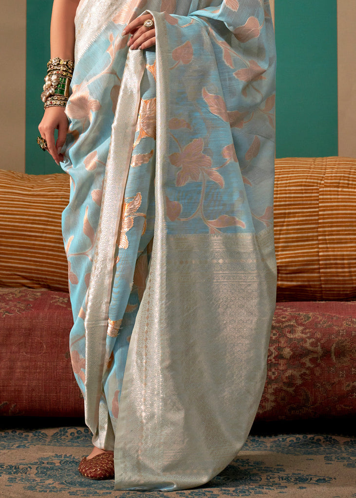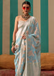 Dusty Blue Woven Cotton Silk Blend Linen Saree with Unstitched Blouse