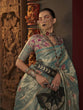 Dusty Green Elegant Banarasi Silk Blend Saree with Woven Design & Tassel Detailing