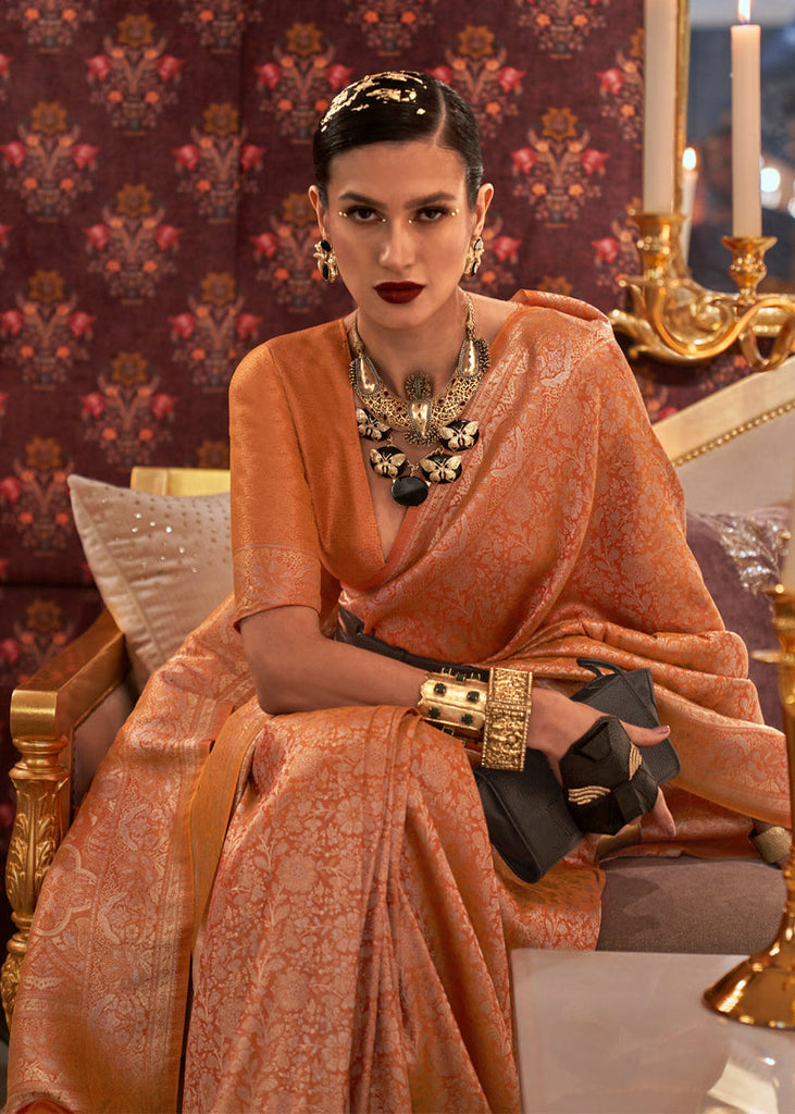 Dusty Orange Graceful Kanjivaram Silk Blend Saree – Woven Design