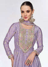 Dusty Purple Elegant Embroidered Chinon Gown with Dupatta