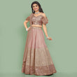 Dusty Rose Pink Partywear Sequins Embroidery Silk Lehenga Choli