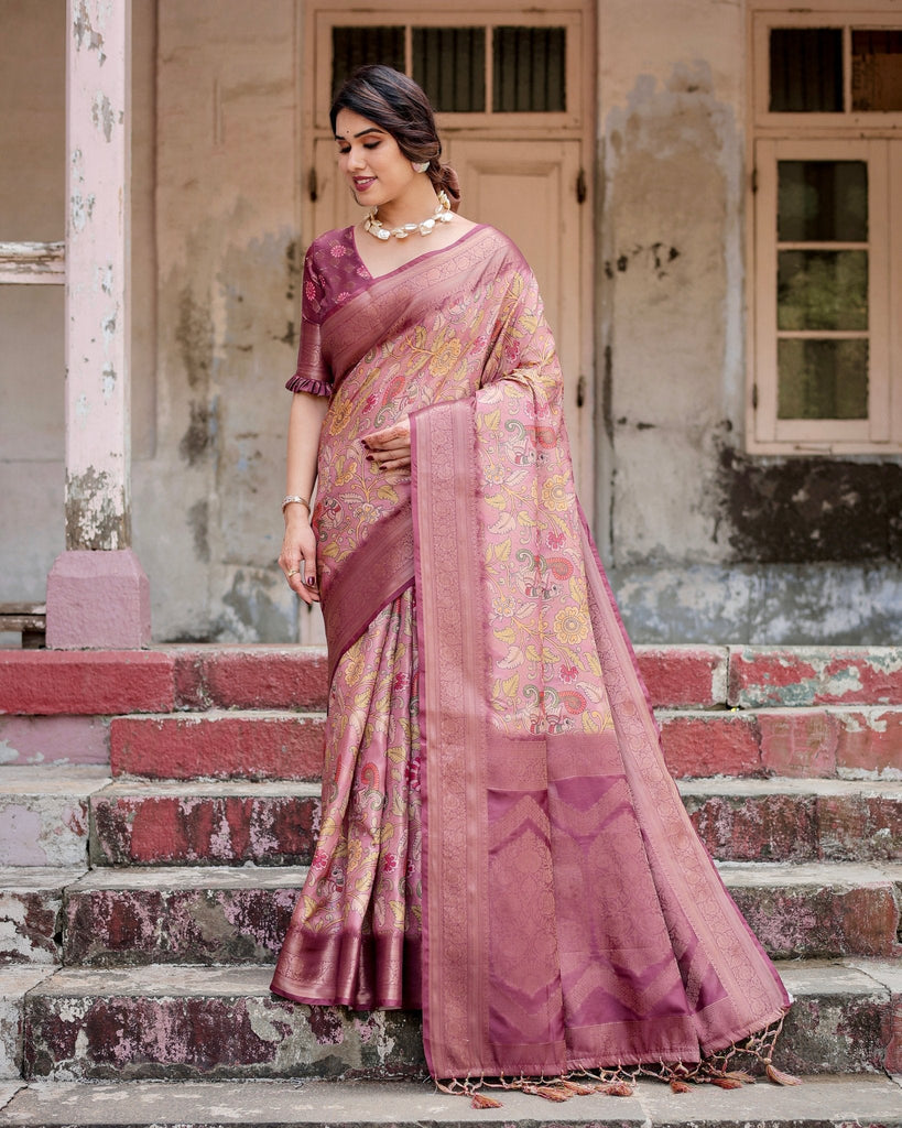 Elegant Pink Banarasi Silk Saree with Floral Zari Weaving and Tassel-Embellished Pallu