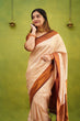 Elision Beige Soft Banarasi Silk Saree With Eloquence Blouse Piece