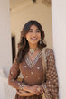 Enthralling Sequin Embroidered Coffee Color Gown with Designer Dupatta - Festive Wear