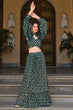 Green Georgette Metallic Foil Work With Crush Pattern Lehenga.