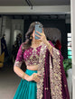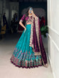 Firozi Tussar Silk Printed Lehenga Set with Embroidered Vichitra Silk Blouse & Dupatta