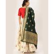 Floral Design Off White Lehenga With Banarasi Silk Dupatta