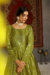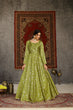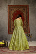 Fluorescent Green Taffeta Metalic Foil Work Anarkali Gown Party Wear