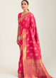 French Rose Pink Zari Butta Woven Banasari Silk Saree