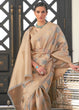 Golden Brown & Grey Lehariya Handloom Weaving Organza Silk Saree