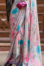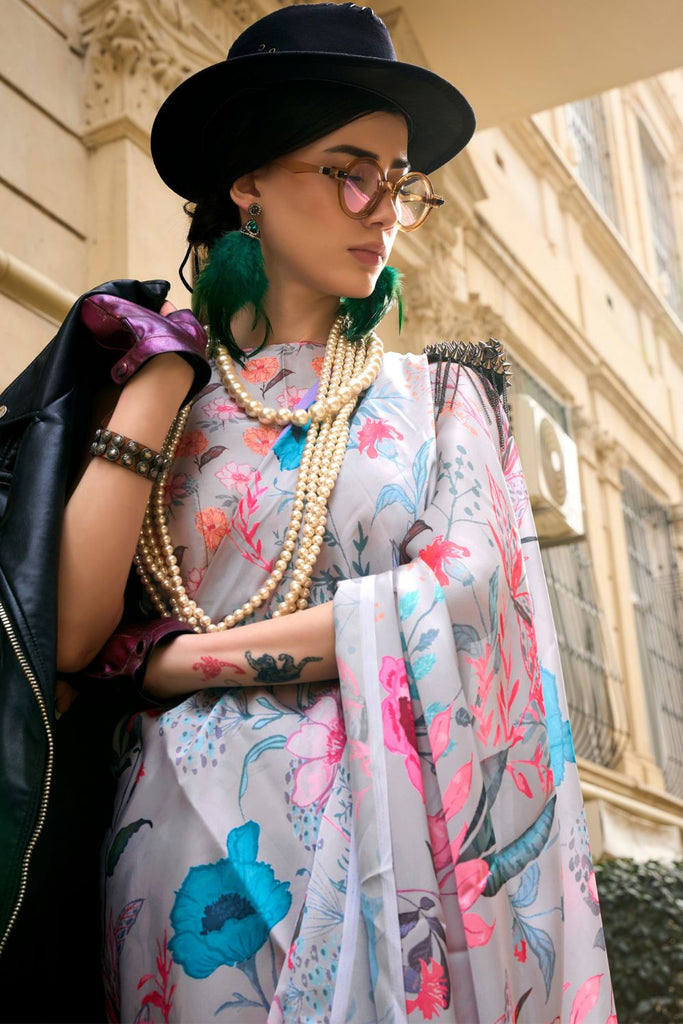 Gray Elegant Bollywood Satin Printed Saree – Party & Festive Wear