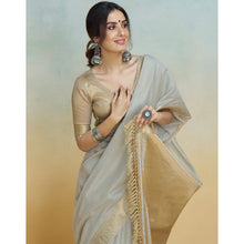 Gray Graceful Woven Handloom Pure Cotton Saree with Chanderi Cotton