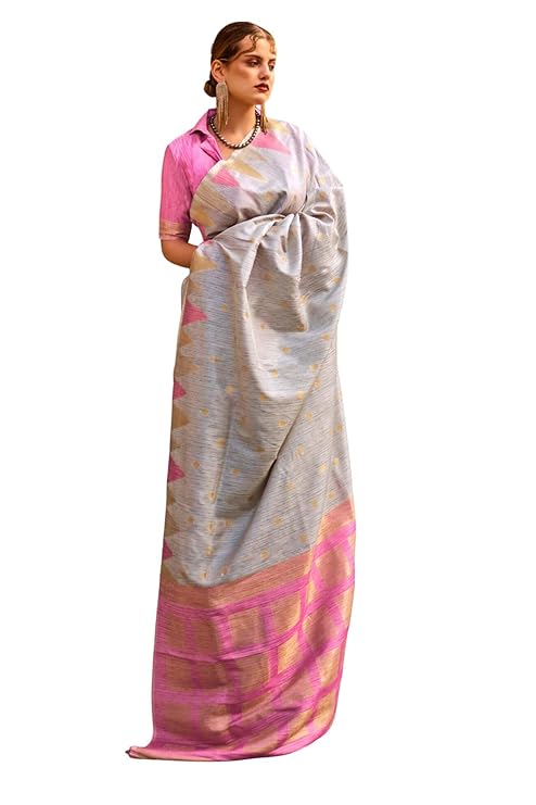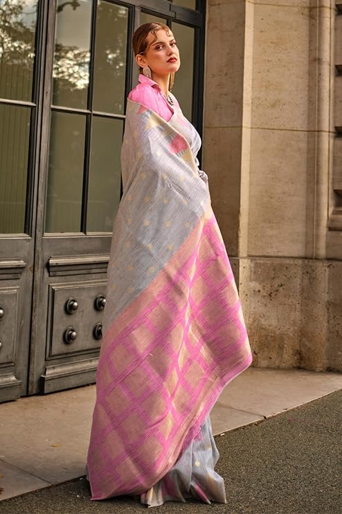 Gray Women's Banarasi Silk Blend Saree with Unstitched Blouse Piece