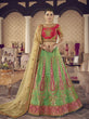 Buy stunning green art silk festive lehenga choli at affordable shopping price. This fantastic lehenga choli which comes with jacquard silk blouse and soft net dupatta.