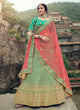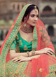 Green Color Stone And Dori Work Satin Material Lehenga Choli