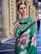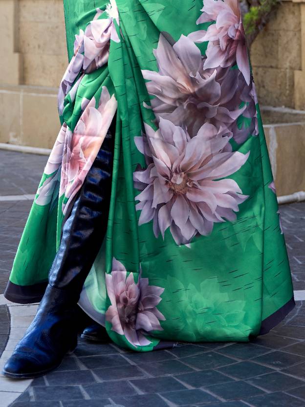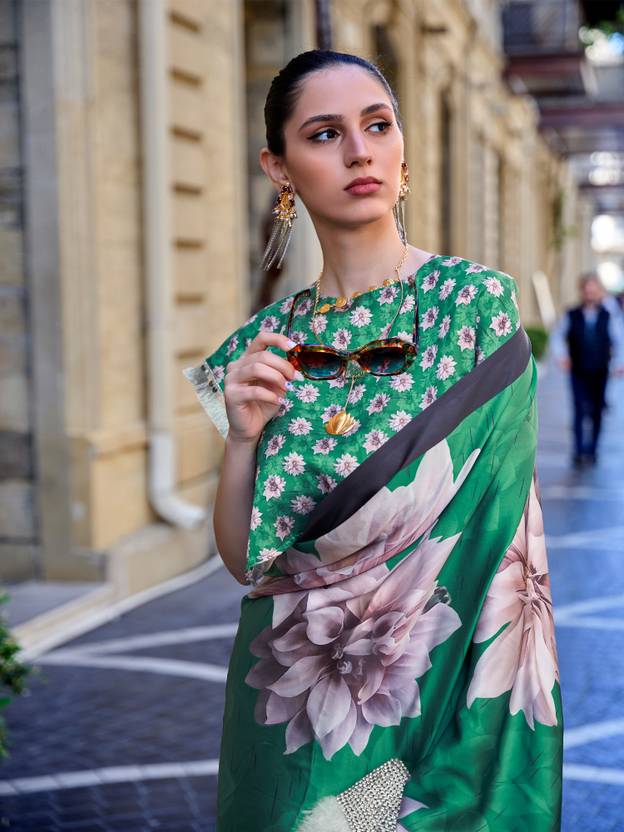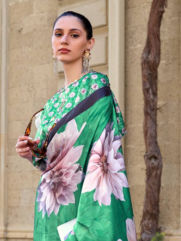 Green Digital Print Saree in Satin Silk Blend – Party & Wedding Wear