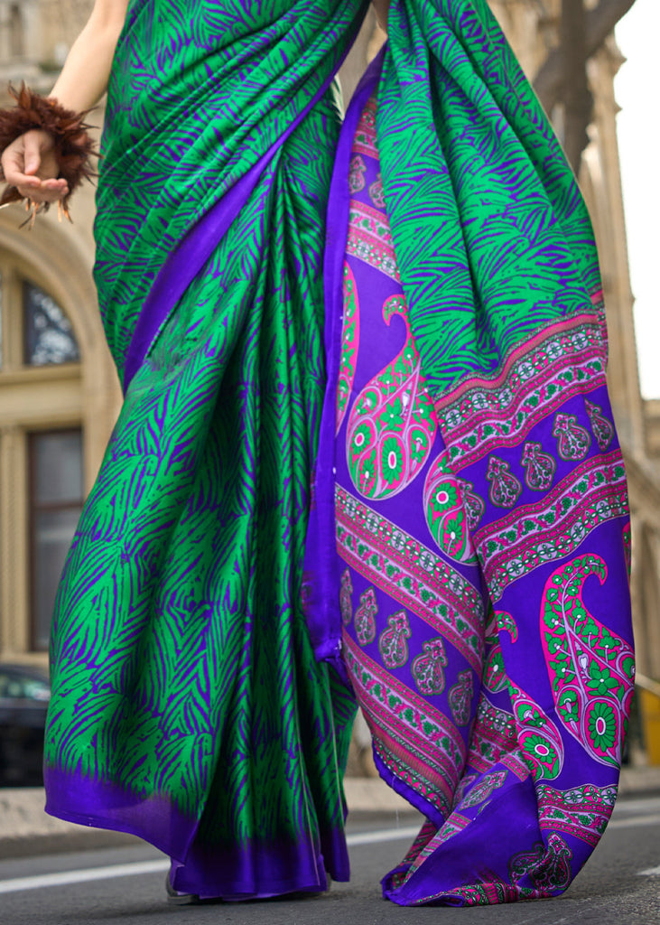 Green Elegant Satin Crepe Saree – A Perfect Blend of Luxury & Grace