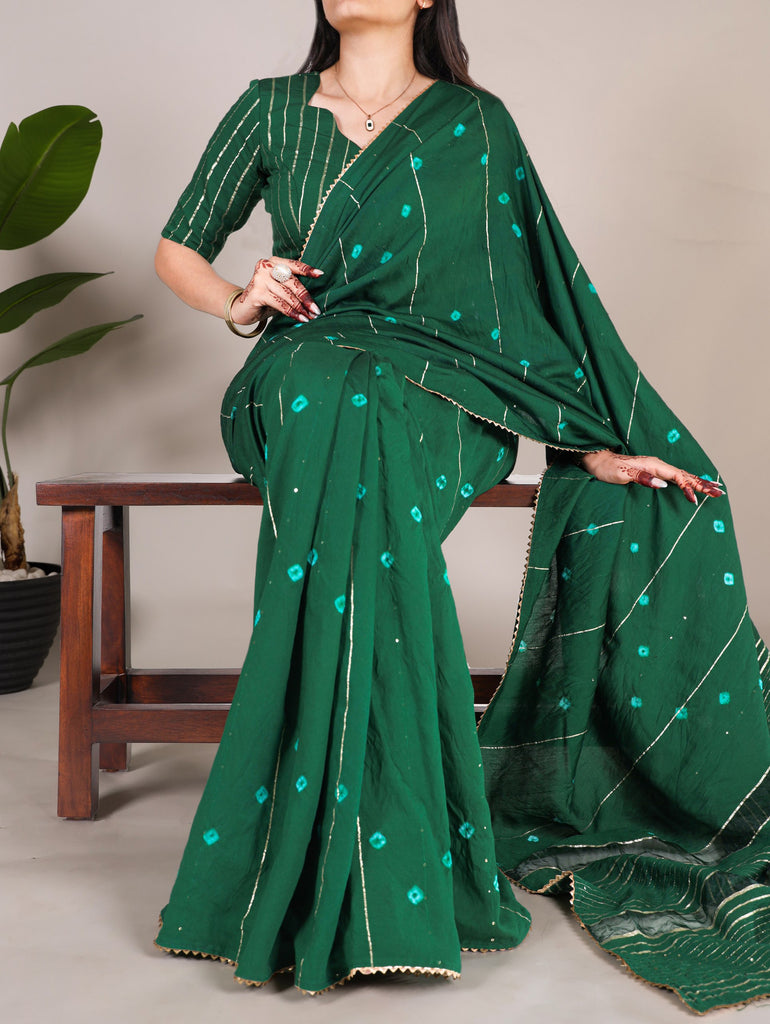 Green Elegant Viscose Chanderi Saree with Sequins, Zari Line, and Gota Patti Lace Border