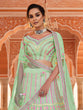 Green Embroidered Organza Semi Stitched Lehenga With Unstitched Blouse