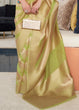 Prized for their sophistication and timeless beauty, Organza silk sarees are a coveted addition to any wardrobe. This Green & Golden Woven saree features a vibrant border and a distinctive pattern on the run. The opulence of golden hues create an alluring visual appeal. Carry it to your next event and get noticed for your style.