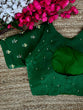 Green Pearl-Embellished german silk Blouse with Handcrafted Golden Work