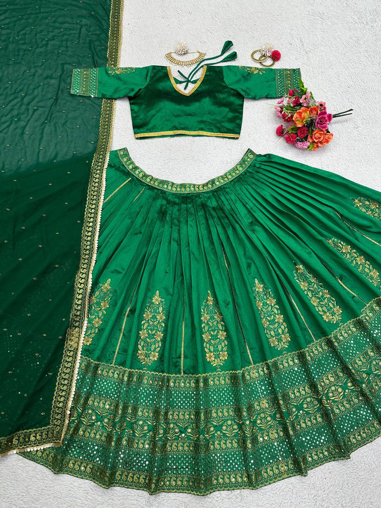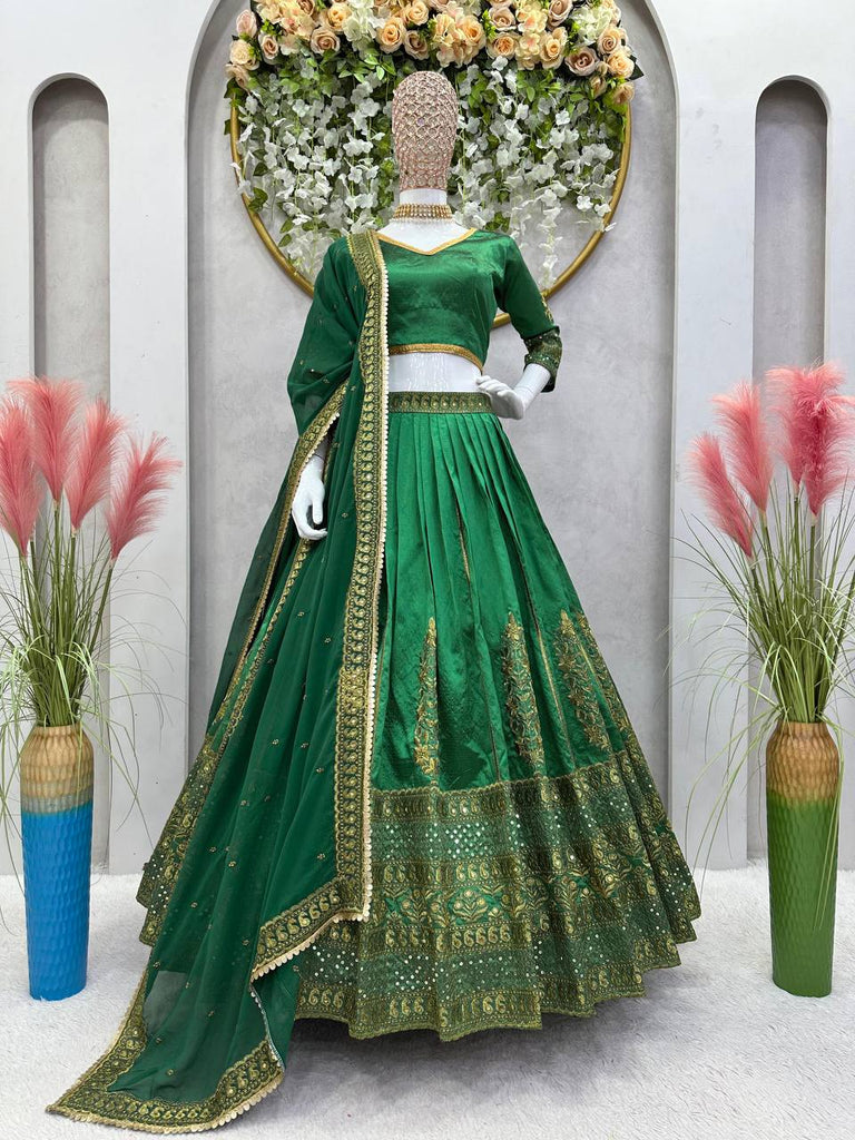 Green Royal Malbari Silk Lehenga Set with Sequin Embroidery & Designer Dupatta