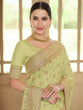 Green Satin Georgette Saree With Unstitched Blouse