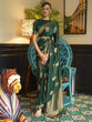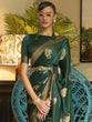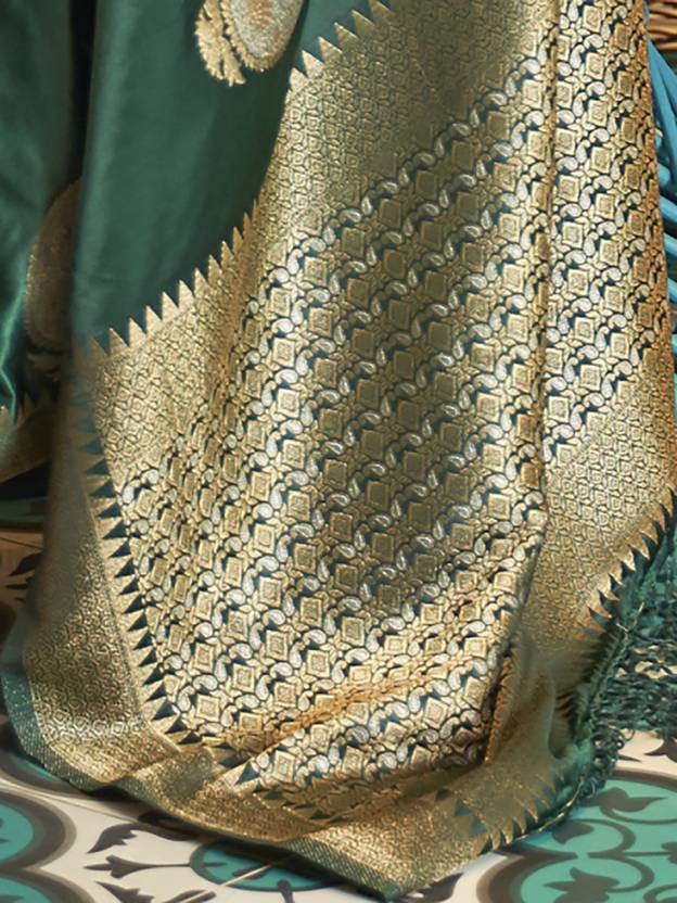 Green Traditional Baluchari Silk Blend Saree with Unstitched Blouse Piece