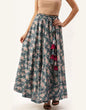 Grey Color Rayon Cotton Skirt with Digital Flowers Print