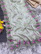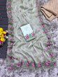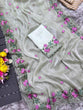 Grey Crush Silk Saree with Intricate Floral Embroidery & Matching Blouse
