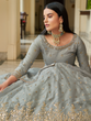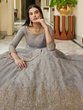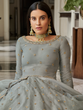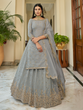 Grey Embroidered Semi Stitched Lehenga With Unstitched Blouse