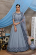 Grey Thread Embroidery Georgette Anarkali Long Gown Semi Stitched