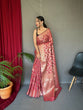The saree features a gorgeous gold jaal design zari weaving all over the saree, which gives it a classic and sophisticated look. The rich zari woven pallu is an eye-catching element that adds a touch of elegance to the saree. The color red is symbolic of passion, love, and celebration, making it a perfect choice for occasions like weddings, parties, and festivals.