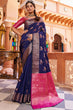 Inspiring Navy Blue Soft Banarasi Silk Saree With Entrancing Blouse Piece
